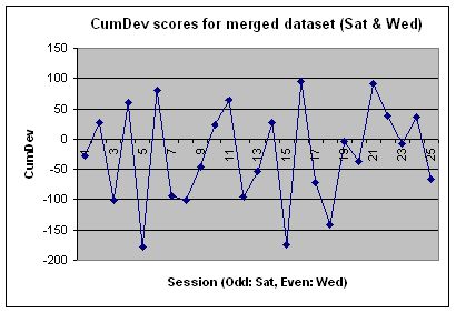 Figure 5. Cumulative deviations for the merged Wednesday and Saturday series. |