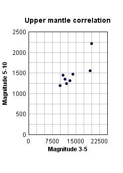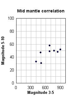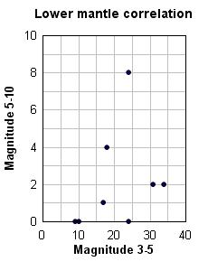 Figure 3 shows the relationship at each depth between the frequencies of quakes and tremors over the years. Clearly, there is a strong correlation at the crust, but this deteriorates as the depth increases. At the lower mantle, there is almost no correlation. This is an indication that the dynamics of the lower mantle are different from those at lesser depths.