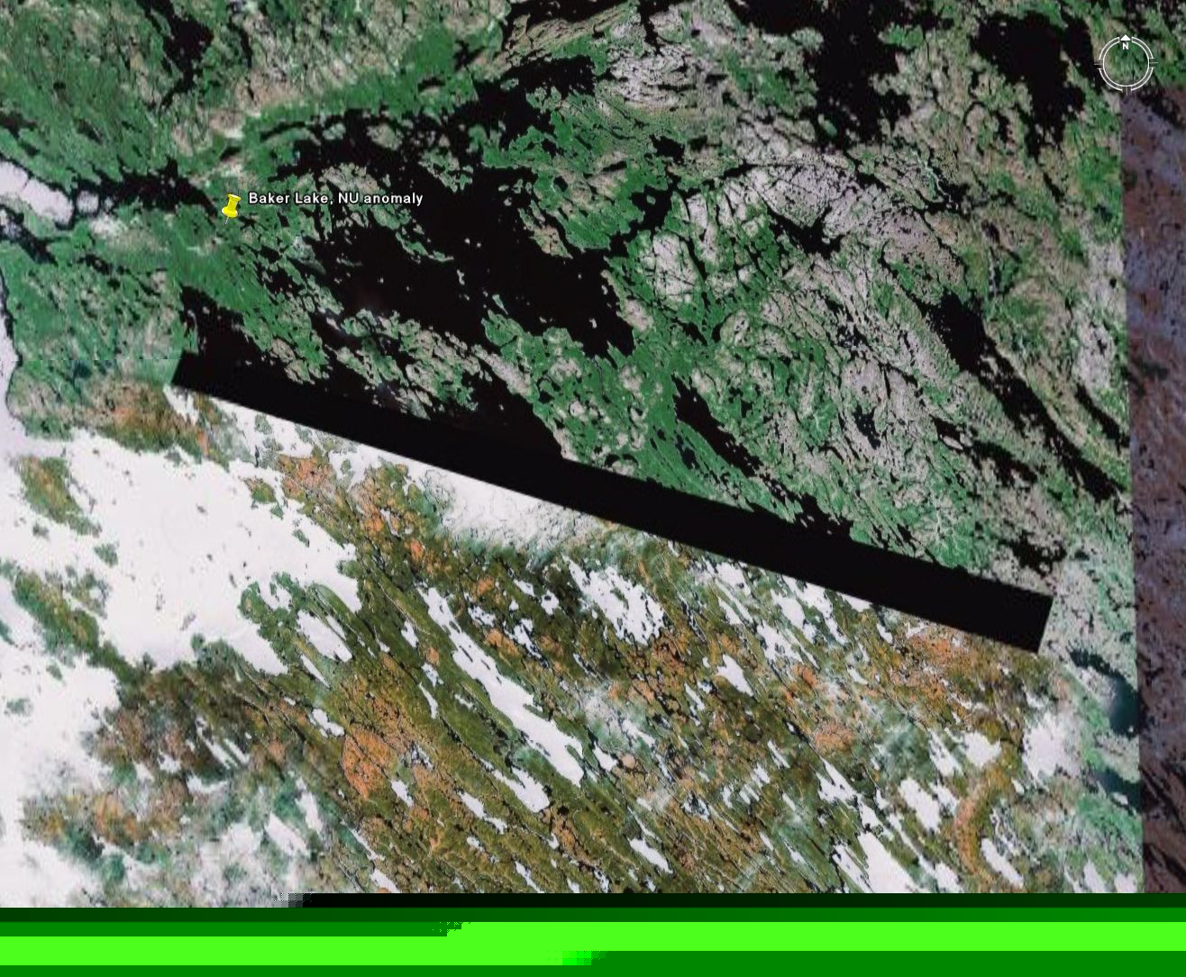 The most likely explanation is that the anomalies resulted from an imaging glitch that was triggered at similar northern latitudes in successive polar orbits of the imaging satellite.